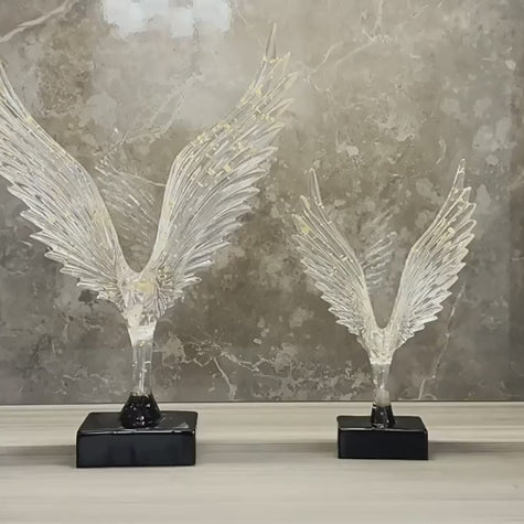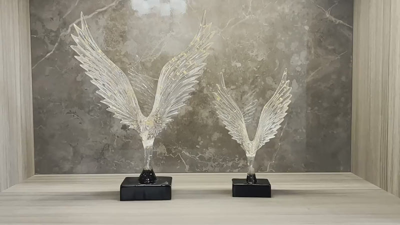 Commanding and radiant, these luxury eagle sculptures embody power, prestige, and limitless ambition. Crafted with exquisite clarity, each piece showcases gracefully outstretched wings sculpted in translucent crystal-like resin, flecked with delicate golden accents that shimmer under ambient light. The result is a breathtaking fusion of elegance and strength, an art piece that feels both ethereal and monumental.