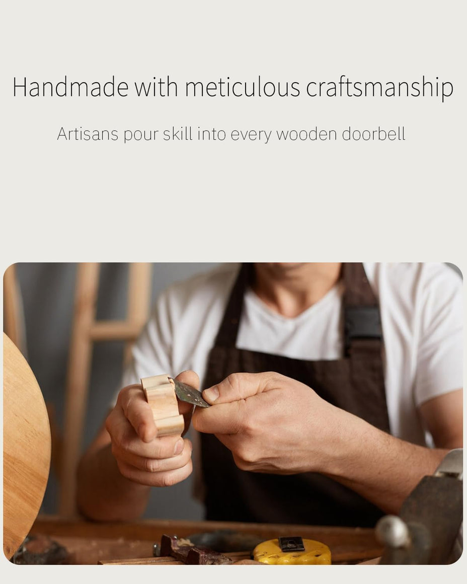 Each wooden doorbell is a masterpiece born from the hands of skilled artisans. With careful carving, sanding, and finishing, they transform natural wood into a blend of beauty and function. Every curve and grain tells a story of craftsmanship — a tribute to tradition, precision, and the art of creating something truly unique for your home.