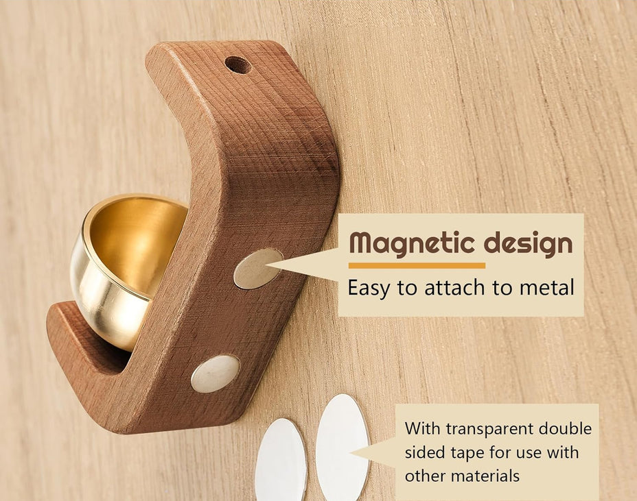 Its magnetic wooden base features powerful built-in magnets that allow the wind-bell to securely attach to any metal surface. For non-metal surfaces, it includes transparent, high-strength double-sided tape that adheres smoothly to wood, glass, ceramic tiles, and more, ensuring a firm hold without damaging your walls or furniture.